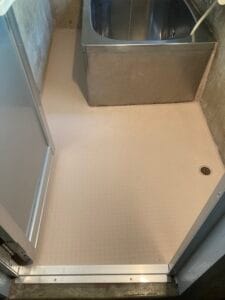施工内容:浴室 モルタル床に浴室シート貼り付け